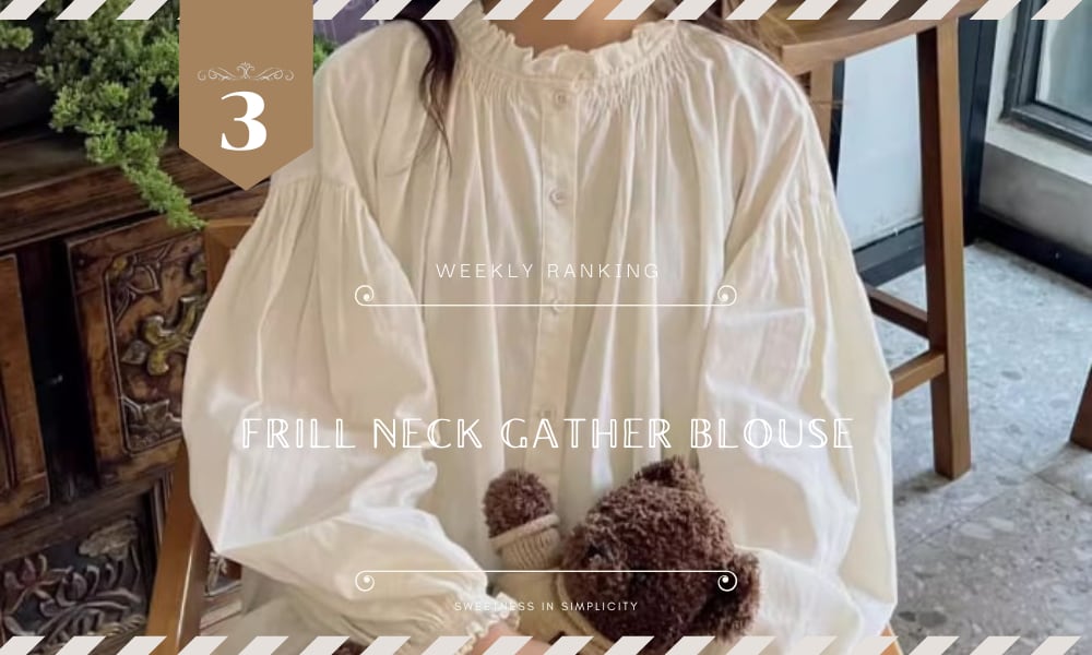 2色/フリルネックギャザーブラウス ・8577
