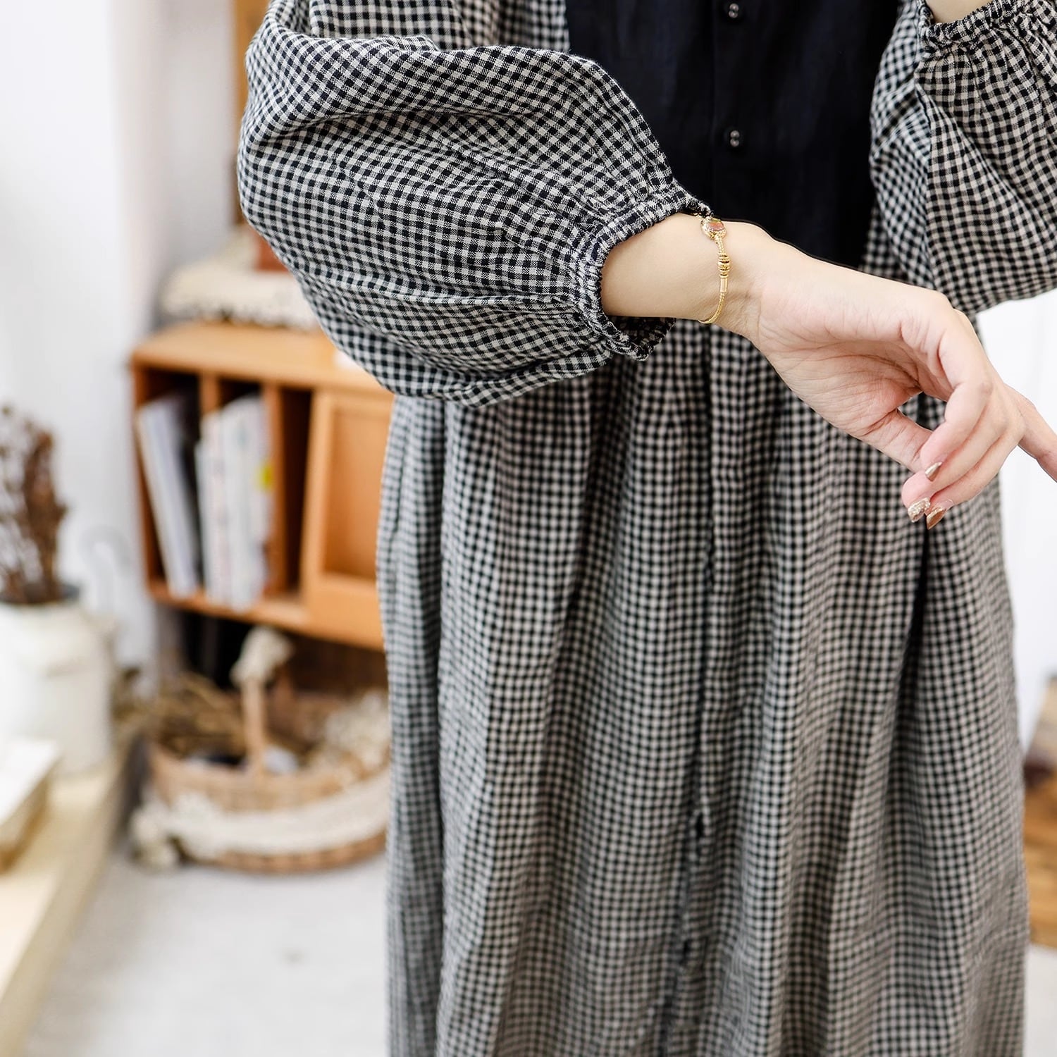 3色/レトロチェック柄シャツロングワンピ ・8186
