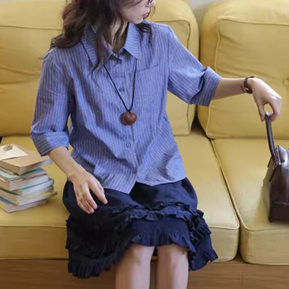 ストライプボタンブラウス ・6246