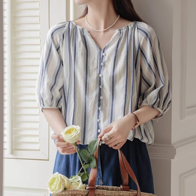 ストライプボタンブラウス ・6246