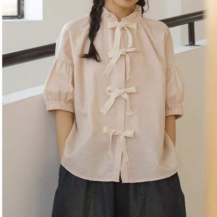 ラウンドネックレトロチェック柄ブラウス ・8142