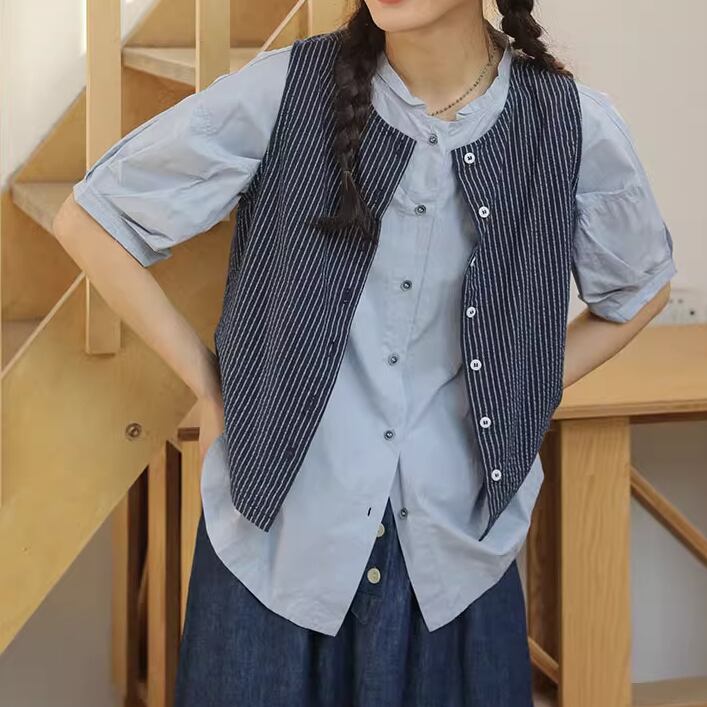 ラウンドネックレトロチェック柄ブラウス ・8142