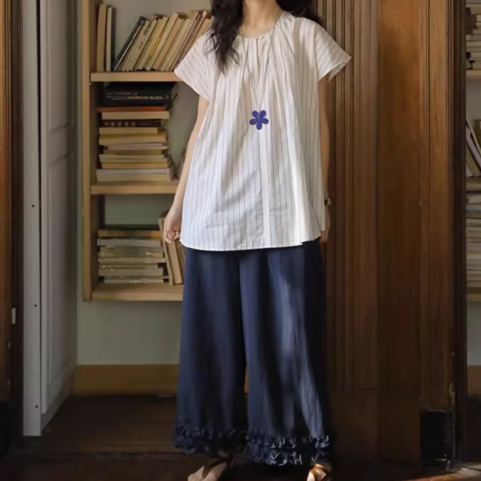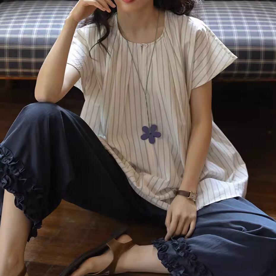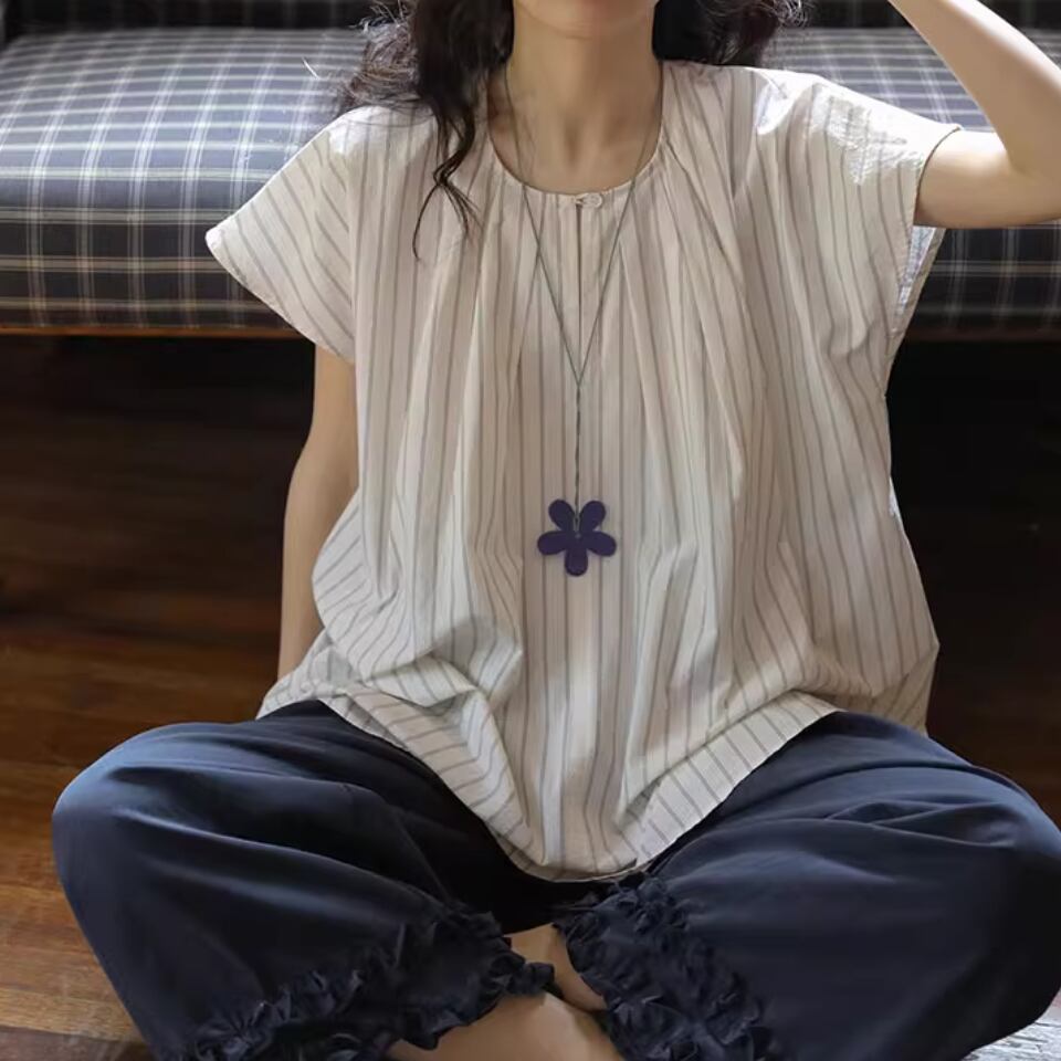 ラウンドネックレトロチェック柄ブラウス ・8142