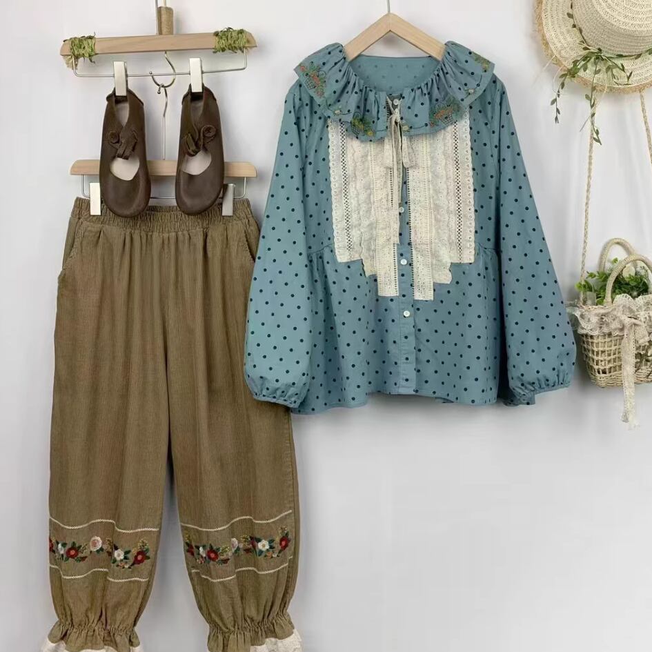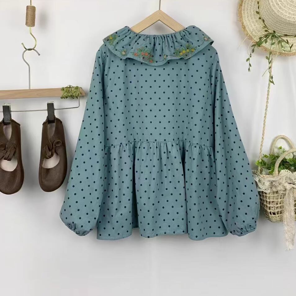ラウンドネックレトロチェック柄ブラウス ・8142