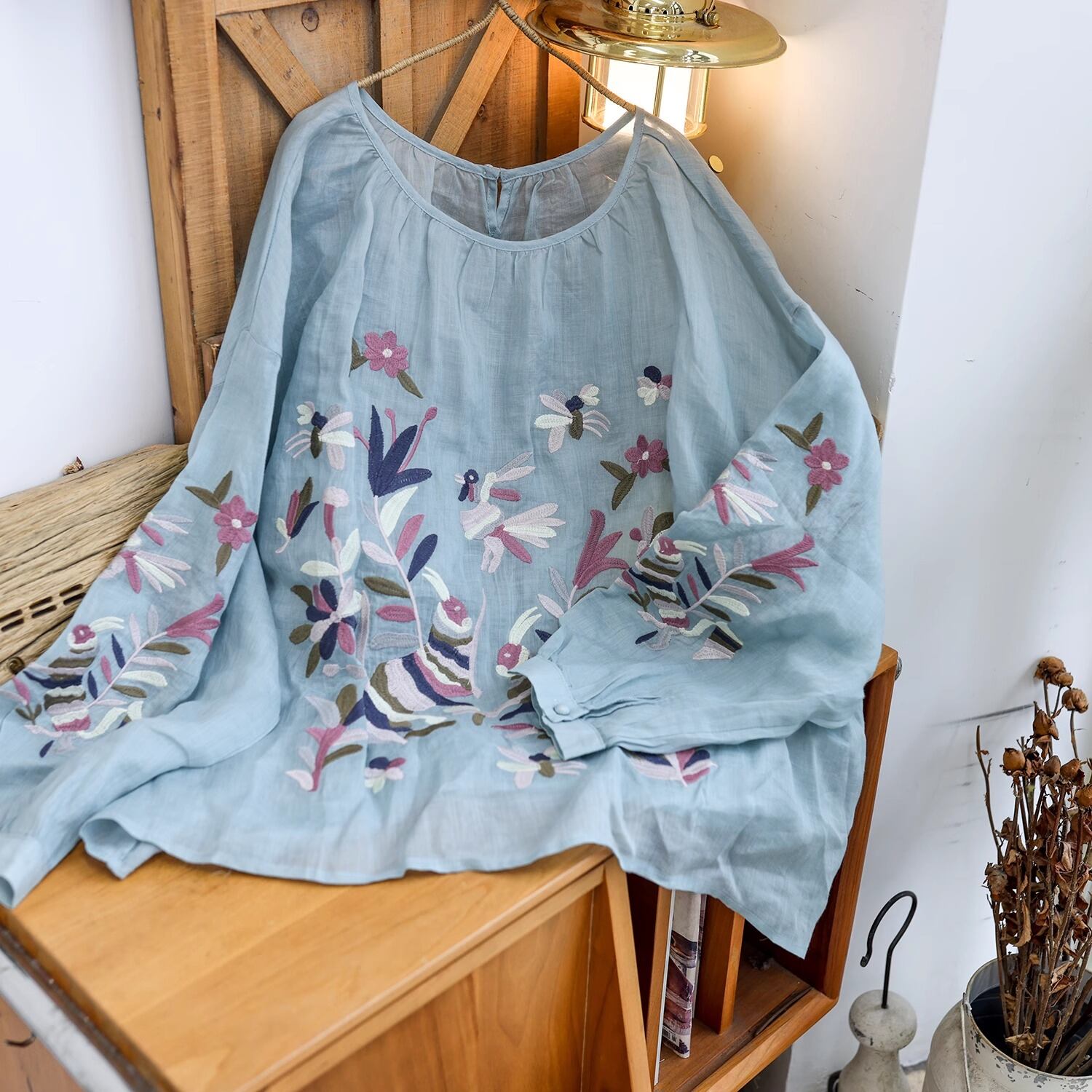 ラウンドネックレトロチェック柄ブラウス ・8142