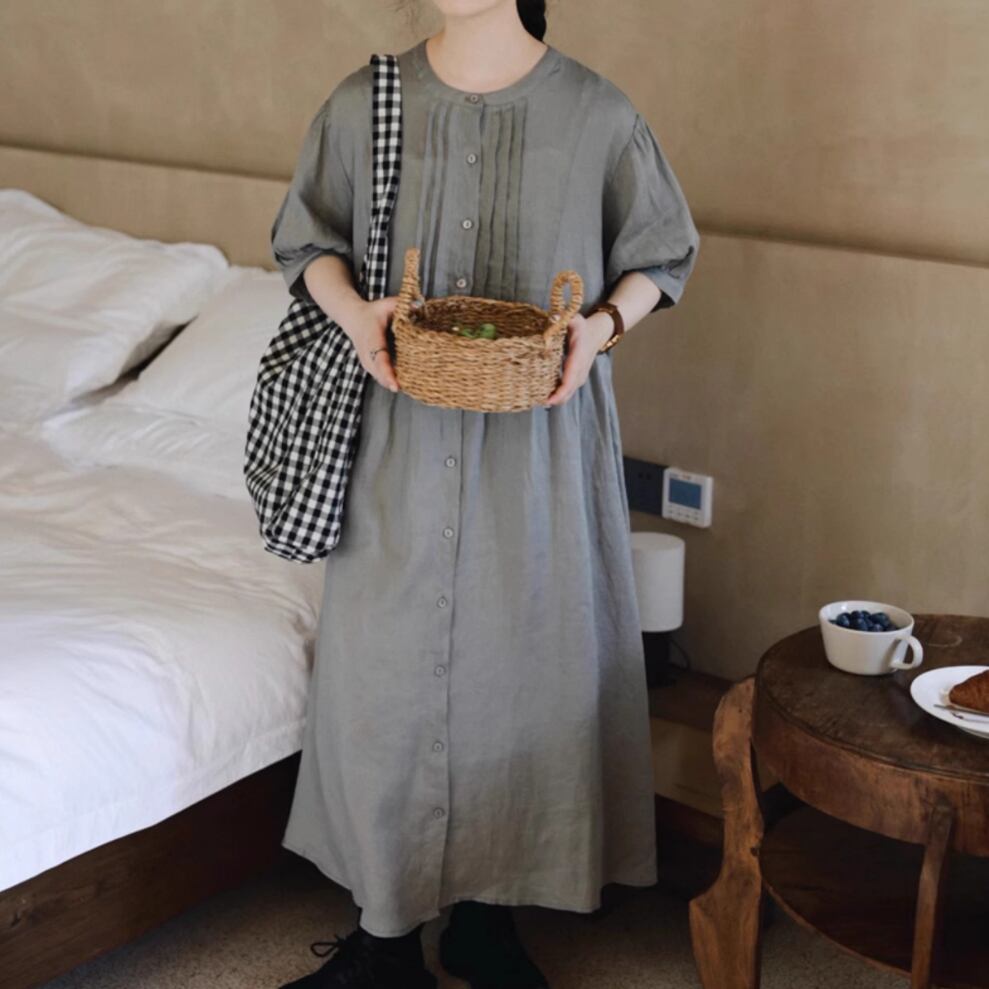 ピンタックリネンボタンワンピース ・5973