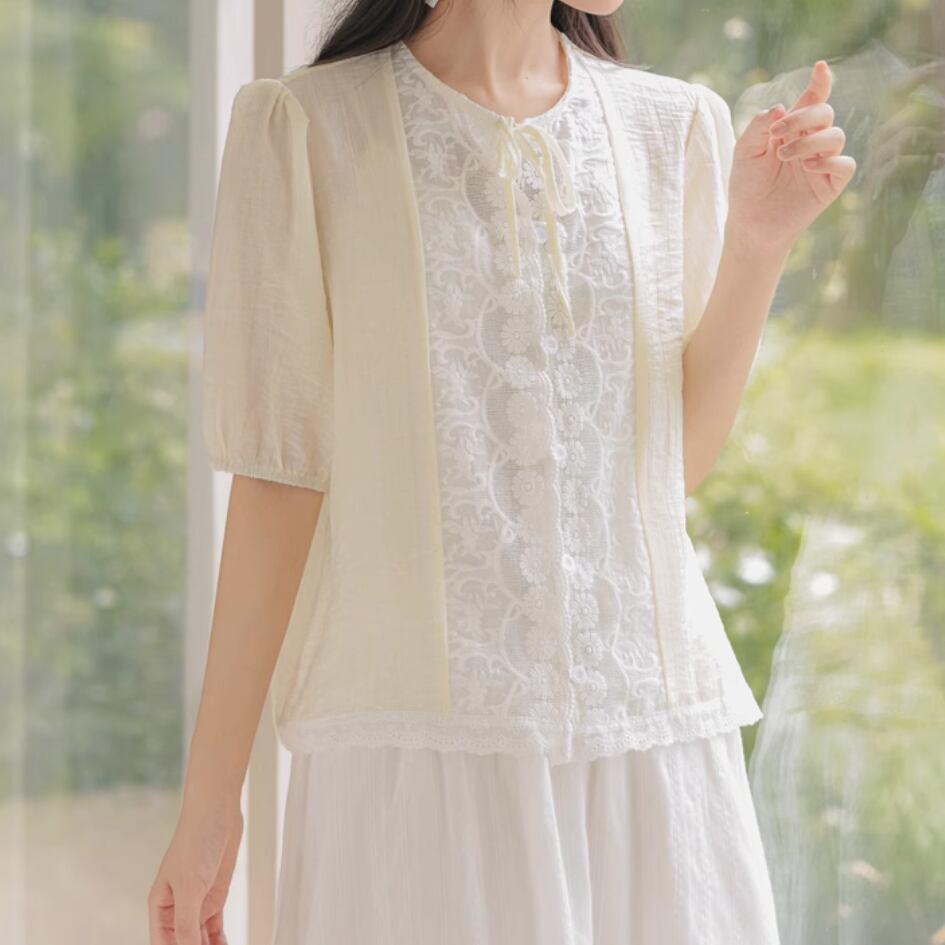2色/フリルカラーコットンブラウス ・8607
