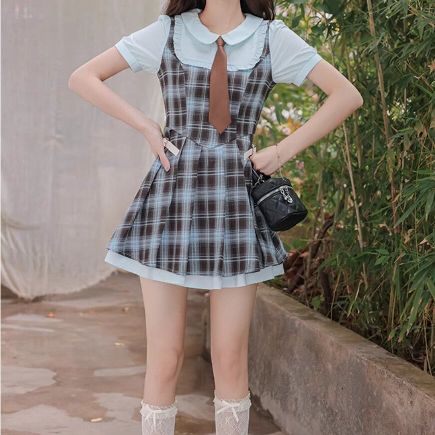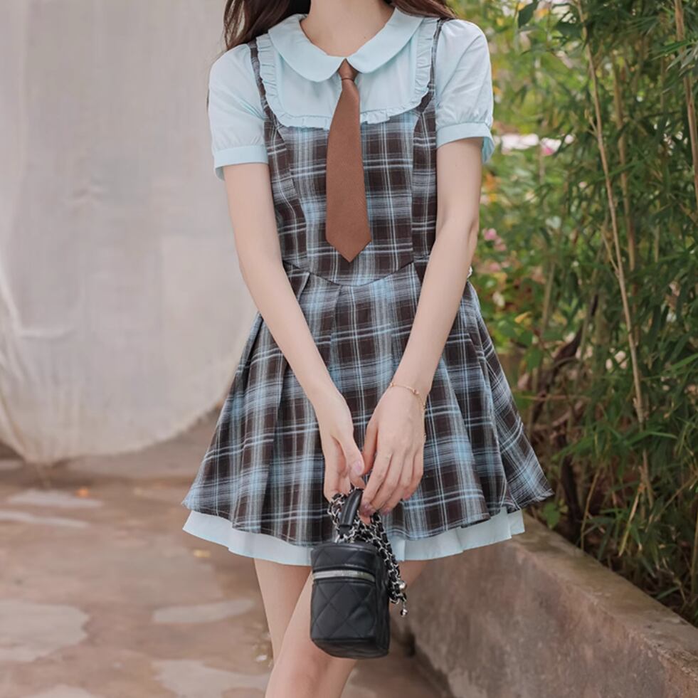 2色/チェック柄シャツワンピース ・7845