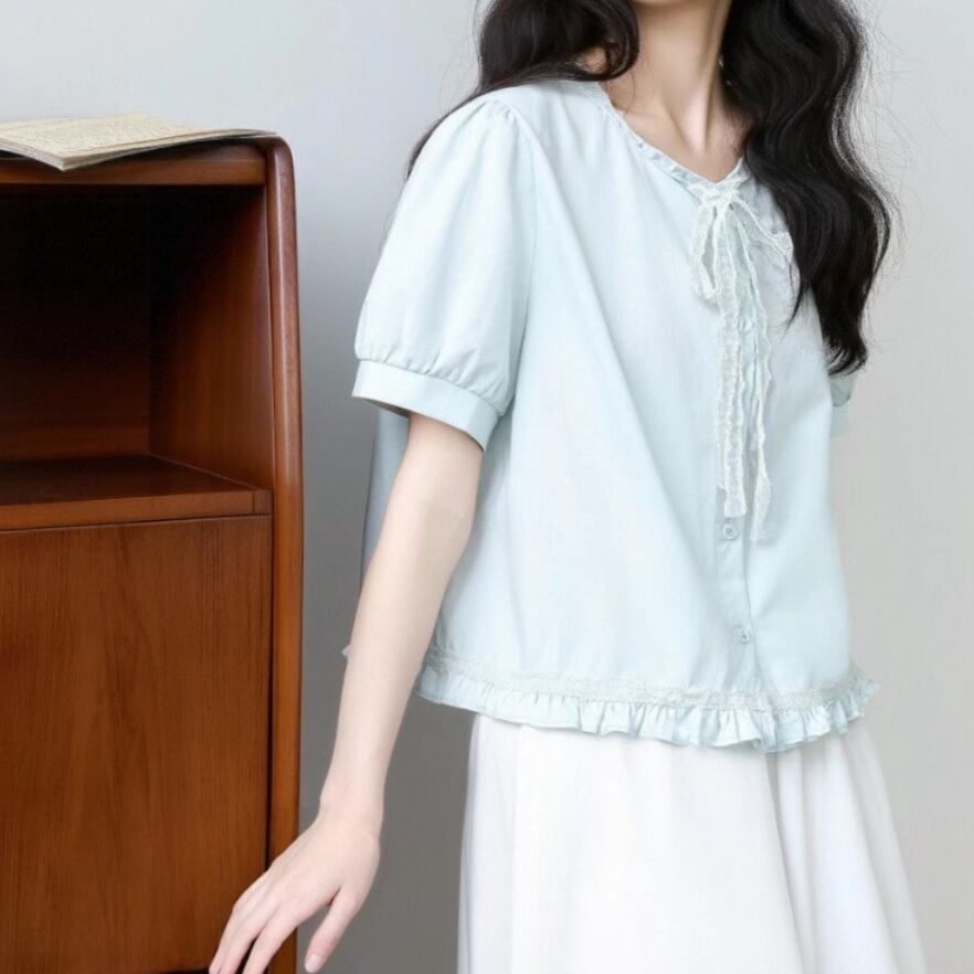 2色/フリルカラーコットンブラウス ・8607