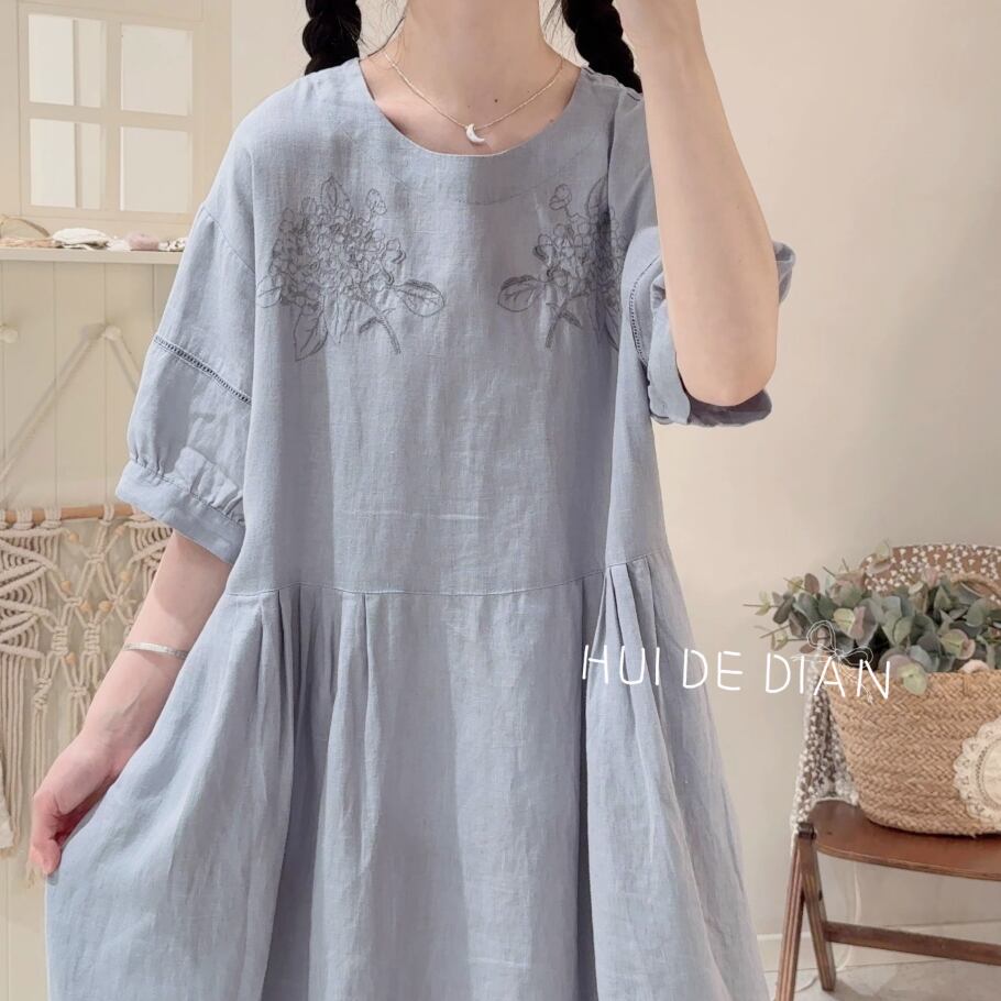 ピンタックリネンボタンワンピース ・5973