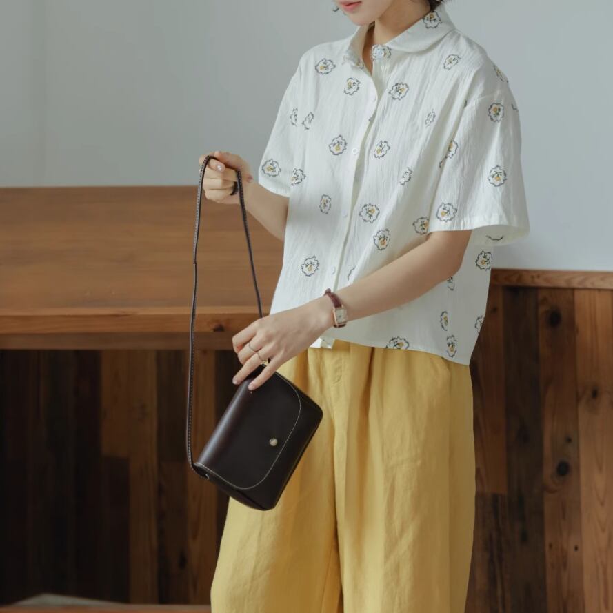 ラウンドネックレトロチェック柄ブラウス ・8142