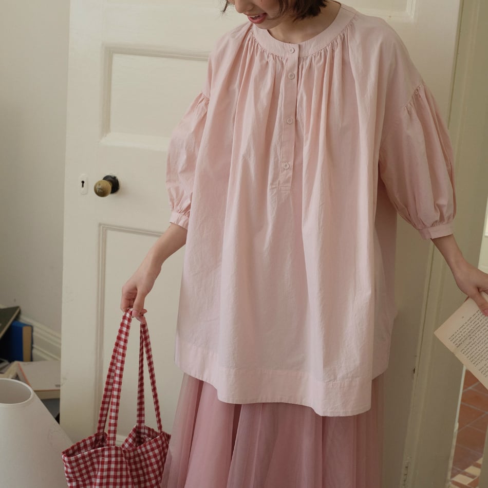 ラウンドネックレトロチェック柄ブラウス ・8142