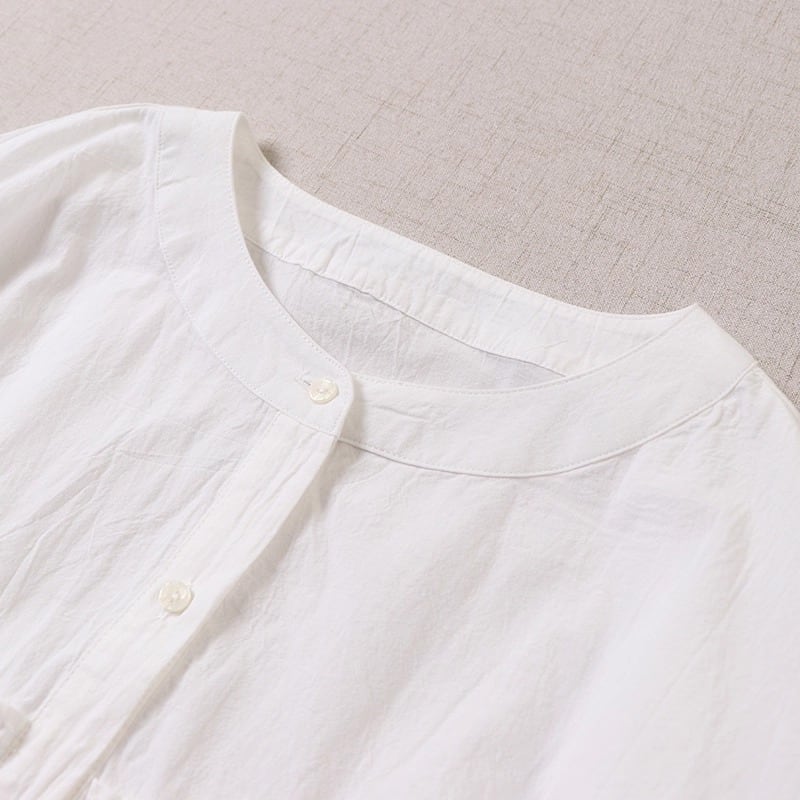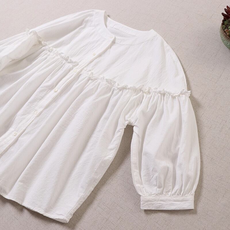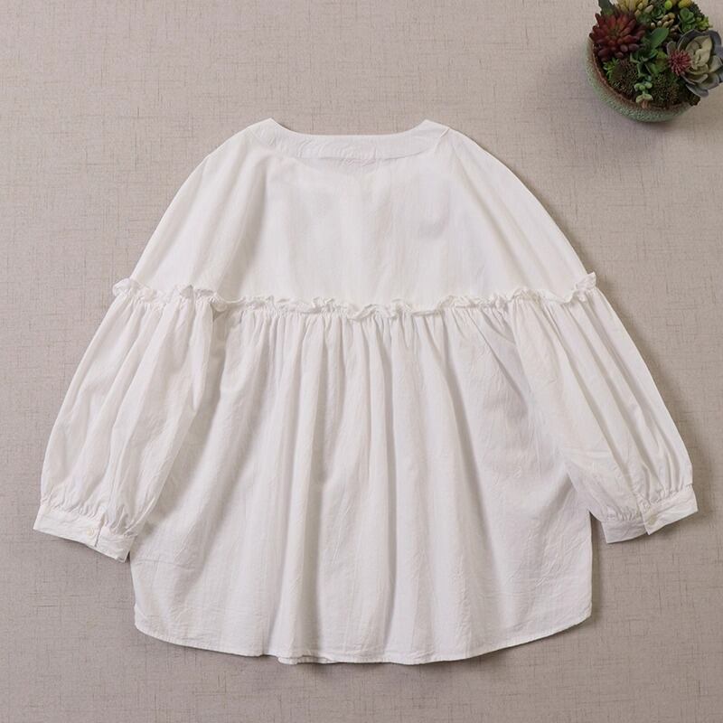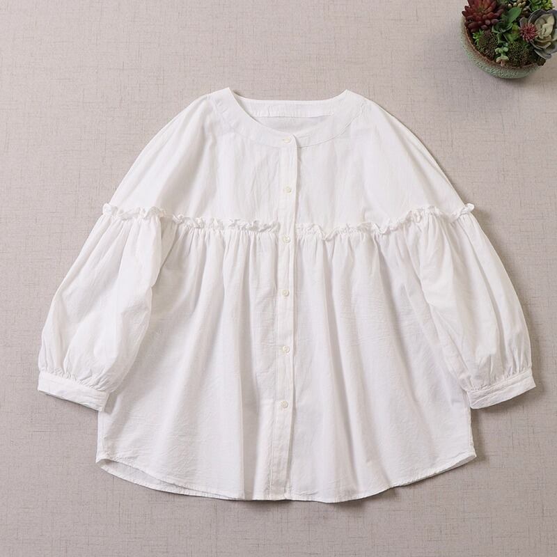 ラウンドネックレトロチェック柄ブラウス ・8142