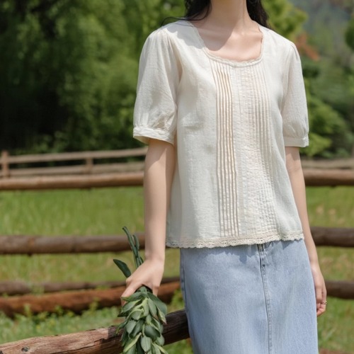 2色/フリルカラーコットンブラウス ・8607