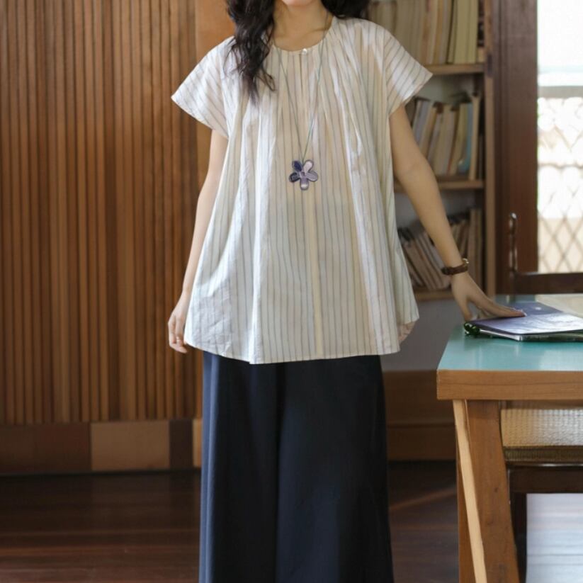 ラウンドネックレトロチェック柄ブラウス ・8142
