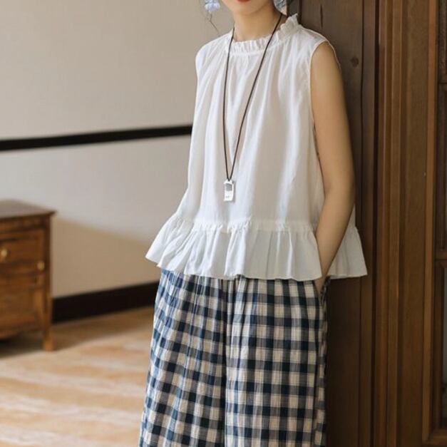 レトロチェック柄ノースリーブ ・4284