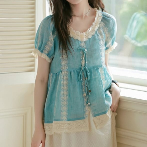 丸ボタンワッフルブラウス ・3622