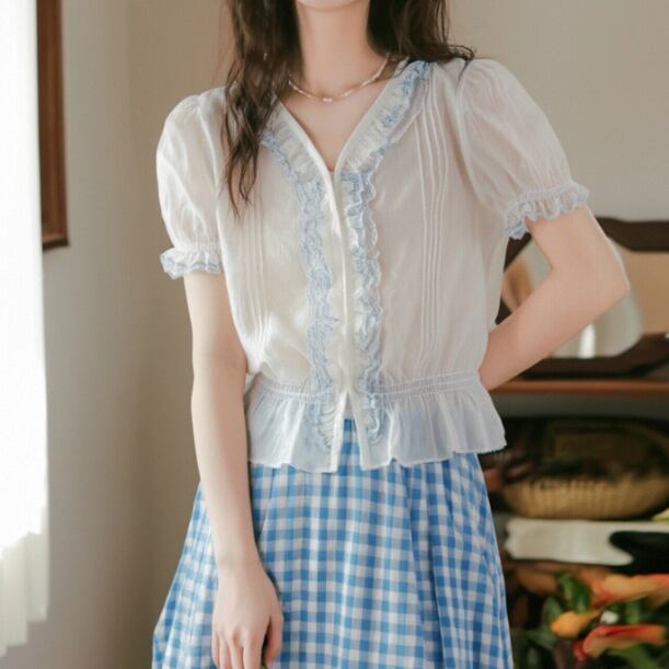 ギンガムチェック柄ブラウス ・5613