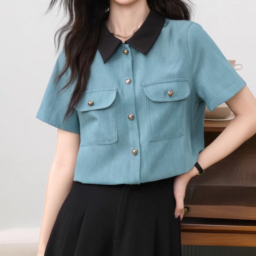 ラウンドネックレトロチェック柄ブラウス ・8142