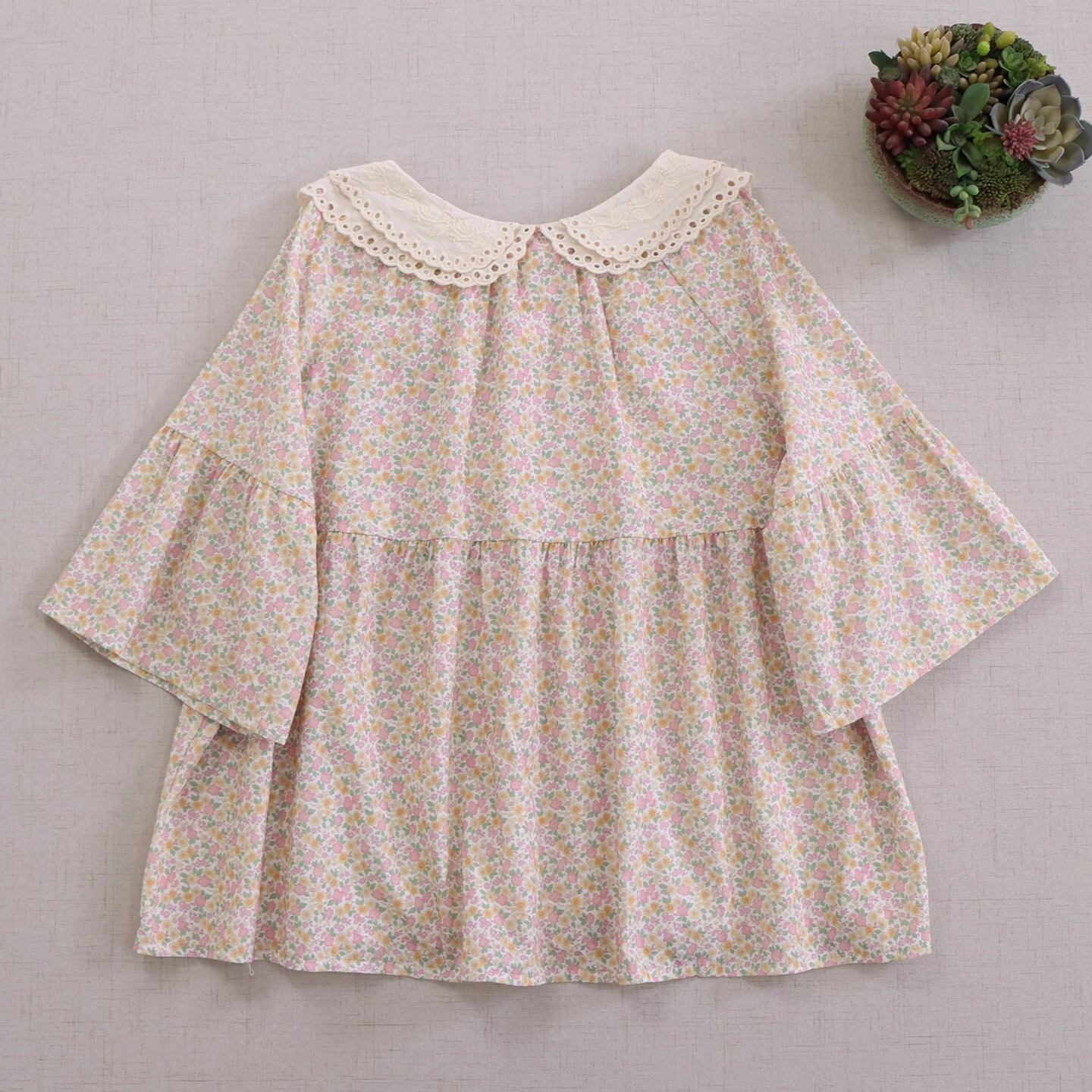 ラウンドネックレトロチェック柄ブラウス ・8142