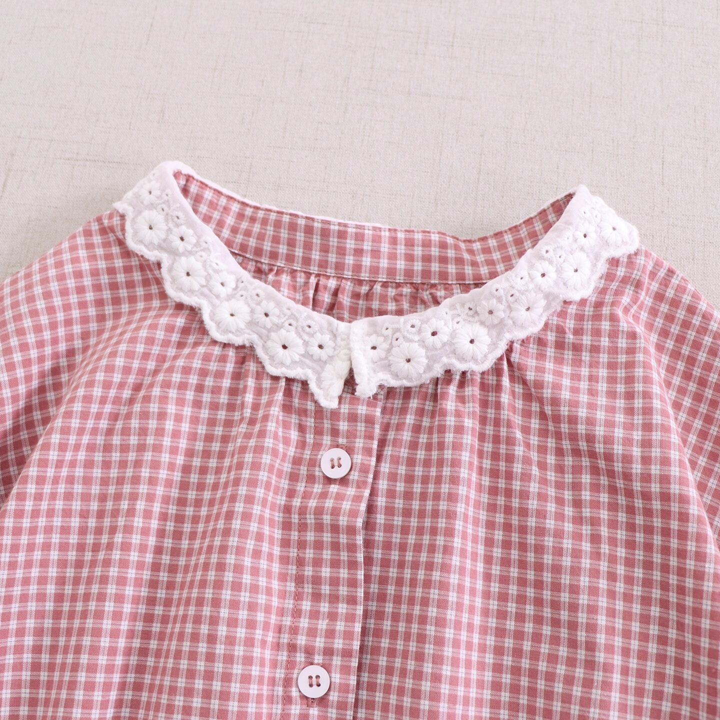 ラウンドネックレトロチェック柄ブラウス ・8142