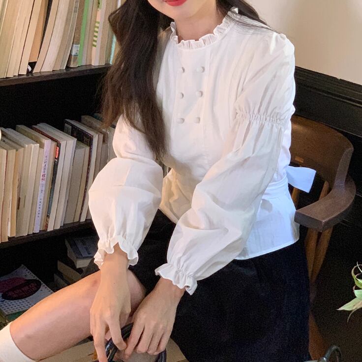 ラウンドネックレトロチェック柄ブラウス ・8142