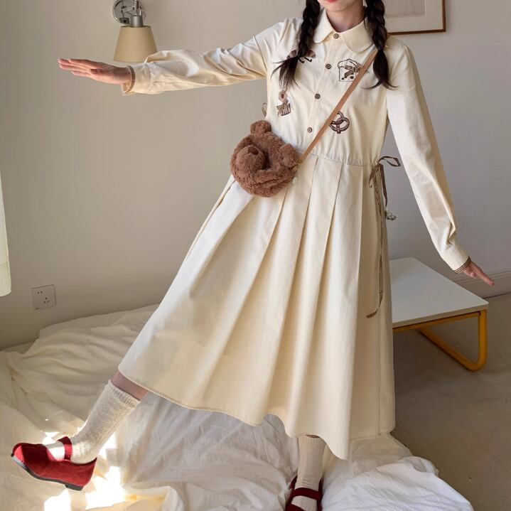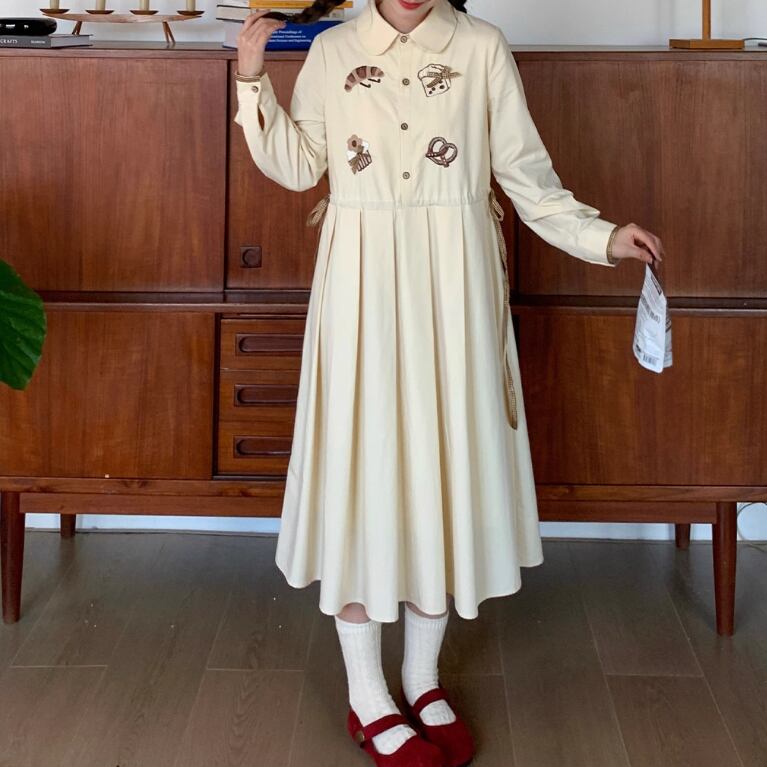 レース貼りコーデュロイロングワンピ ・6410