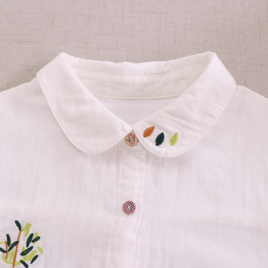 ラウンドネックレトロチェック柄ブラウス ・8142