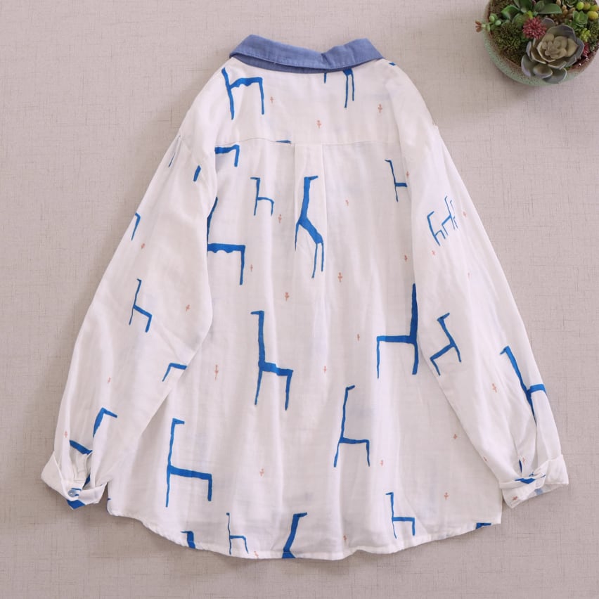 ラウンドネックレトロチェック柄ブラウス ・8142
