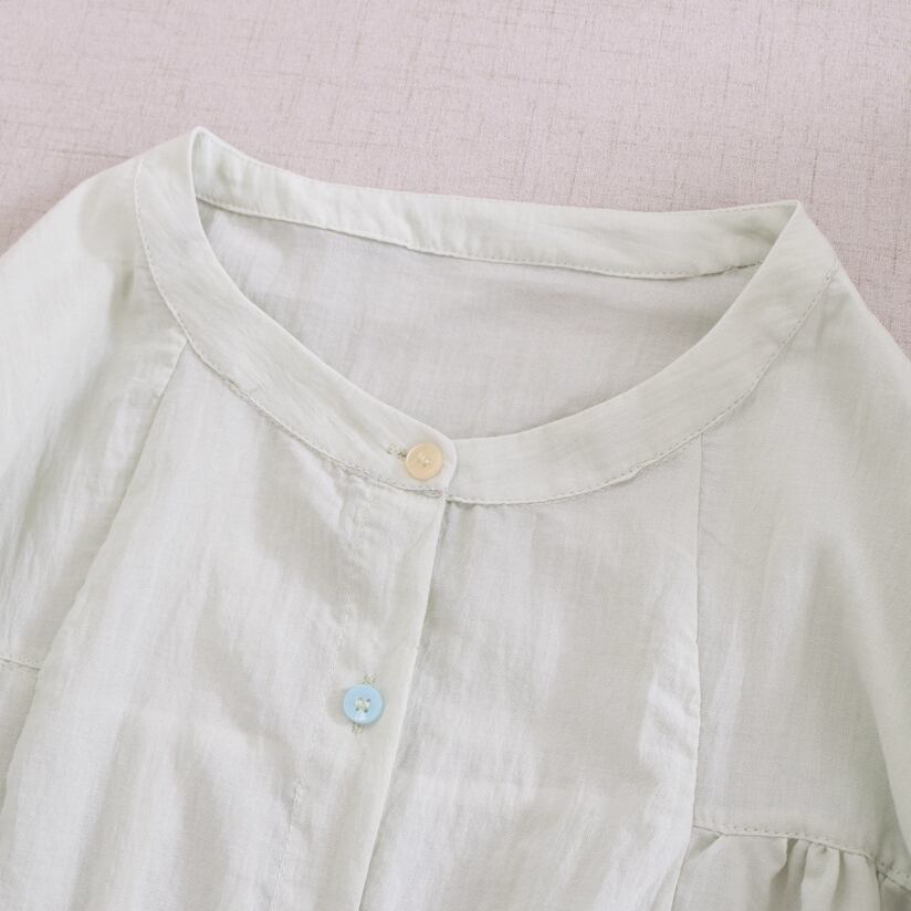 ラウンドネックレトロチェック柄ブラウス ・8142