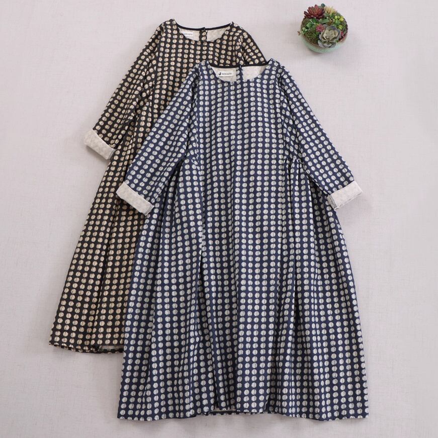 3色/レトロチェック柄シャツロングワンピ ・8186