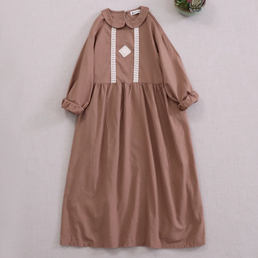 レース貼りコーデュロイロングワンピ ・6410