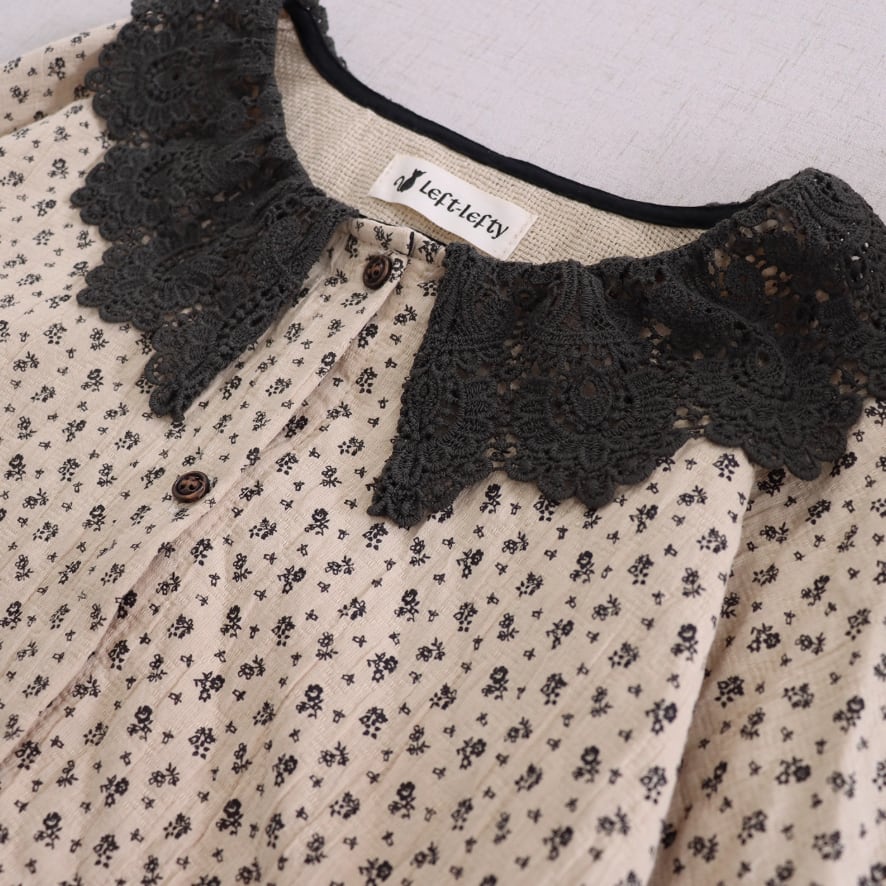 ラウンドネックレトロチェック柄ブラウス ・8142