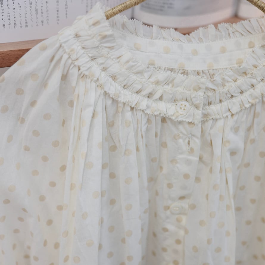 ラウンドネックレトロチェック柄ブラウス ・8142