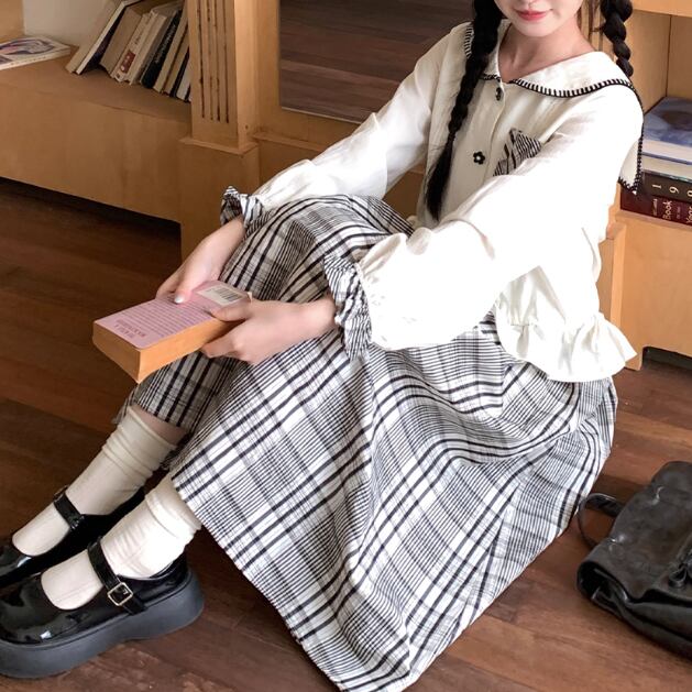 【2点セット】フリルトップス+タックジャンスカ ・8295