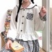 【2点セット】レースネックトップス+サイドリボンベスト ・4338
