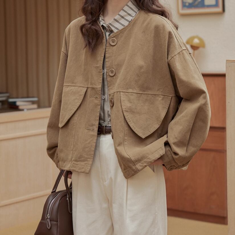 ノーカラーループボタンジャケット ・5737
