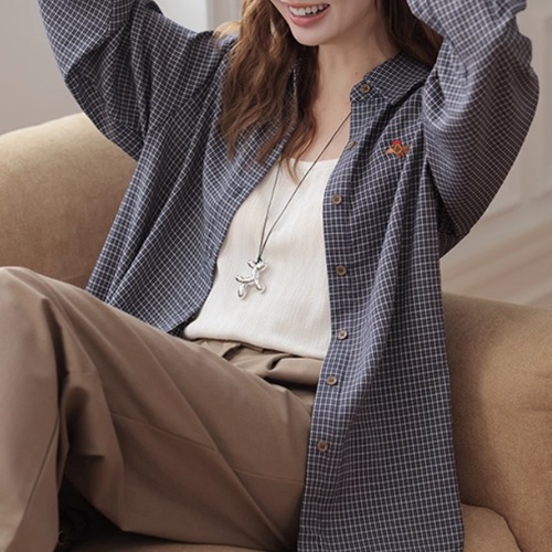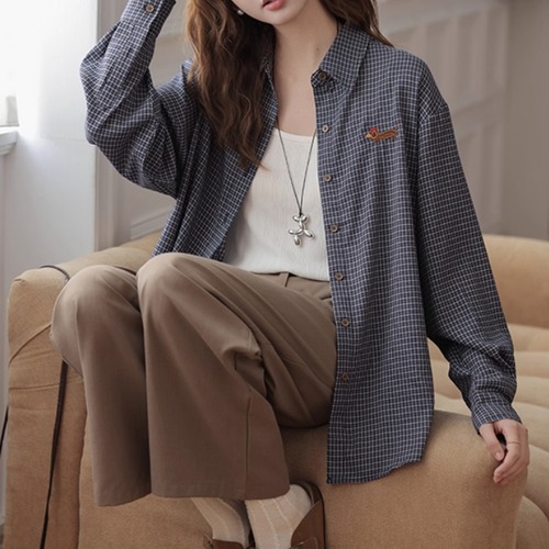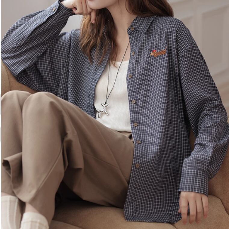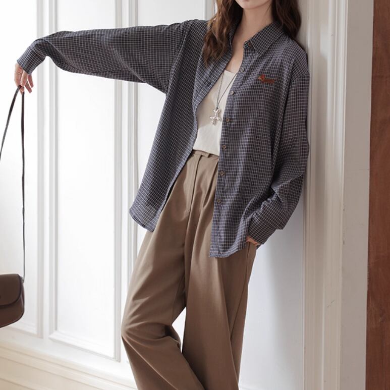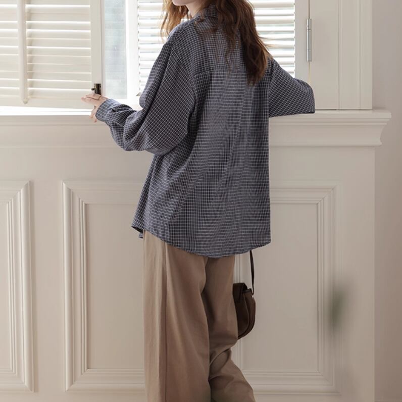 ラウンドネックレトロチェック柄ブラウス ・8142