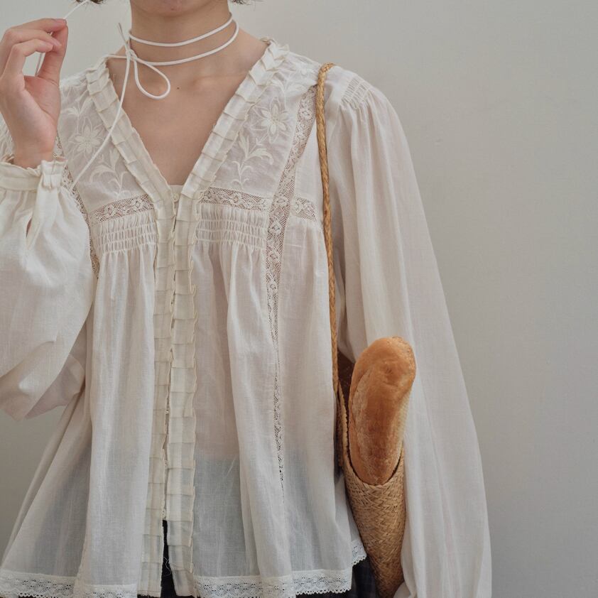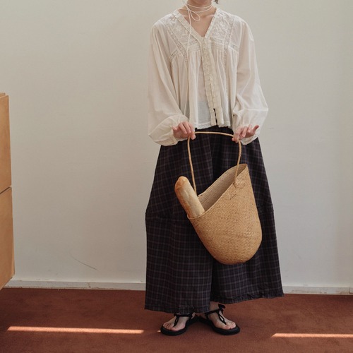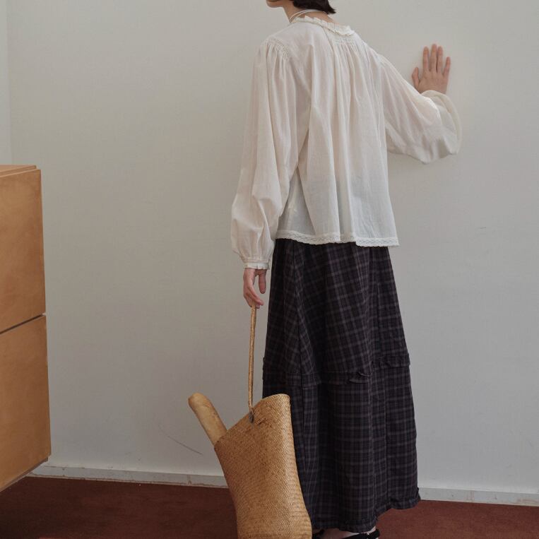 ラウンドネックレトロチェック柄ブラウス ・8142