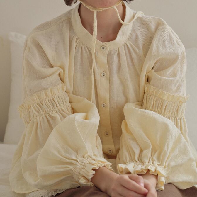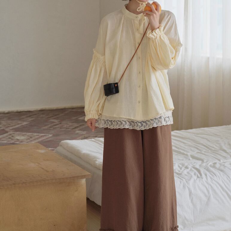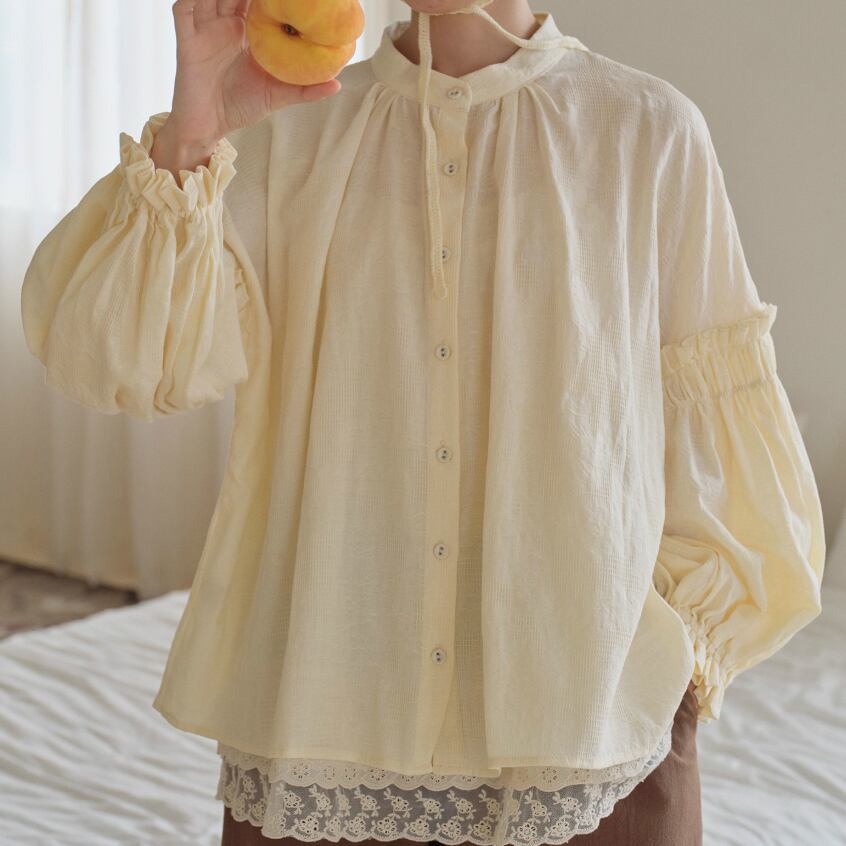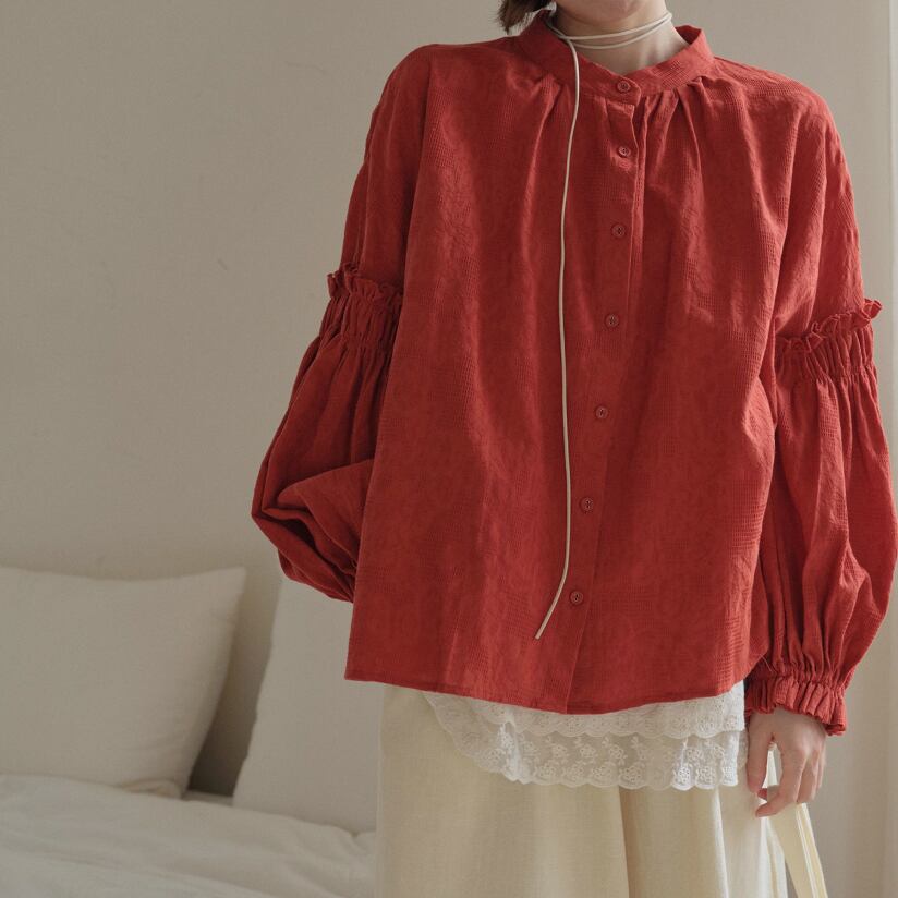 ラウンドネックレトロチェック柄ブラウス ・8142