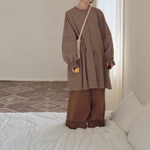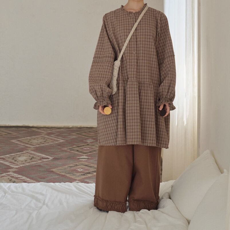 3色/レトロチェック柄シャツロングワンピ ・8186