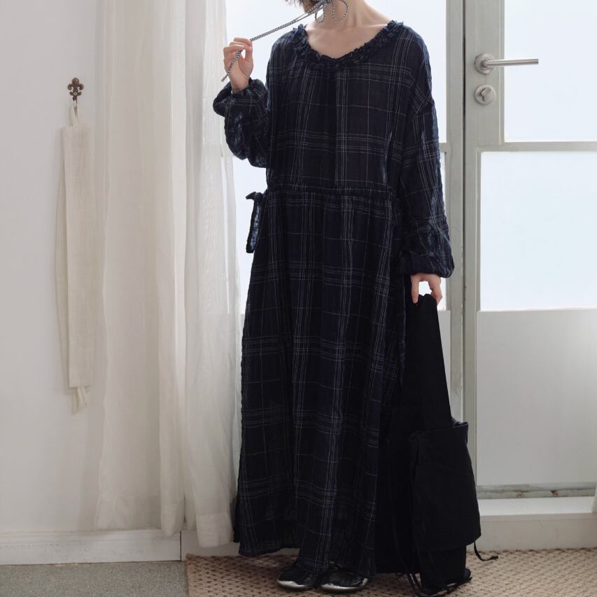 2色/チェック柄シャツワンピース ・7845