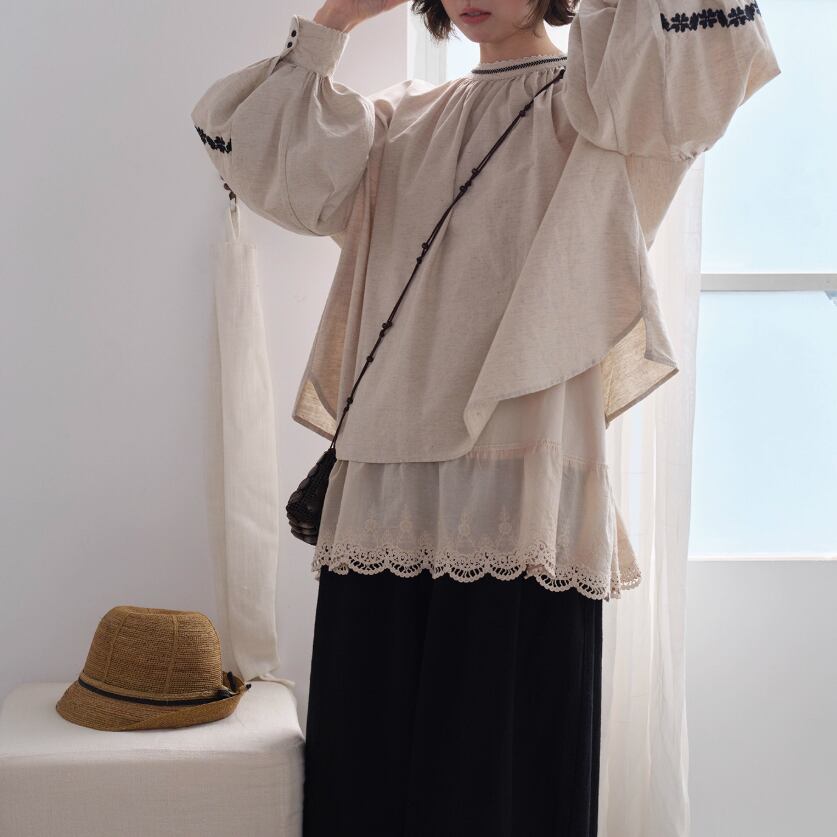 2色/フリルカラーコットンブラウス ・8607