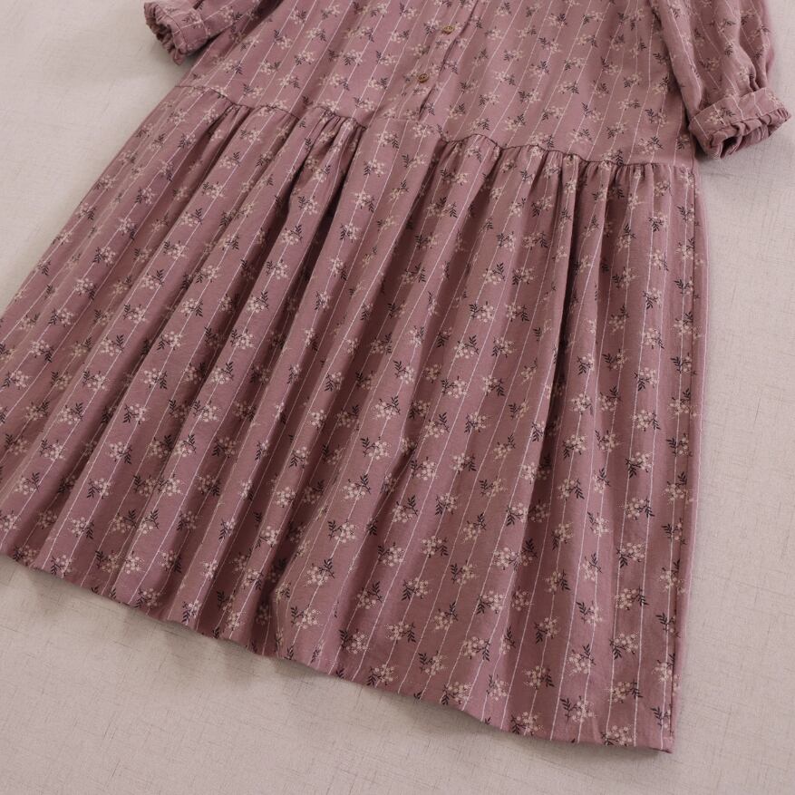 レース貼りコーデュロイロングワンピ ・6410
