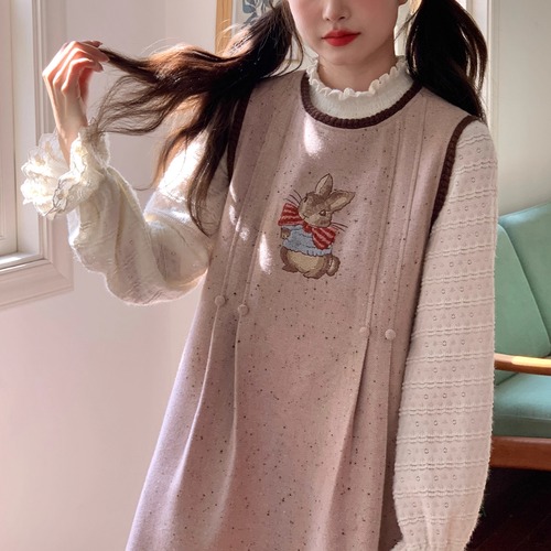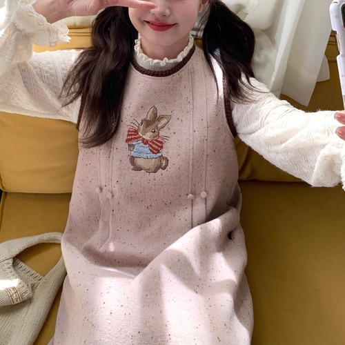 バックリボンリネンジャンパースカート ・3657