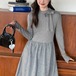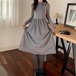 3色/レトロチェック柄シャツロングワンピ ・8186