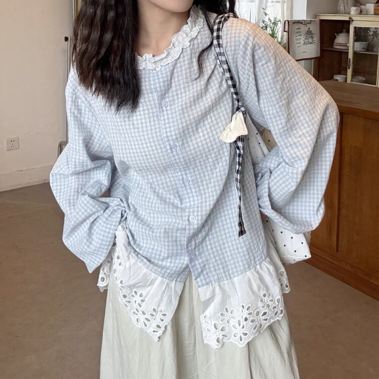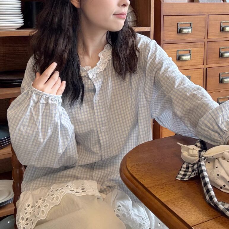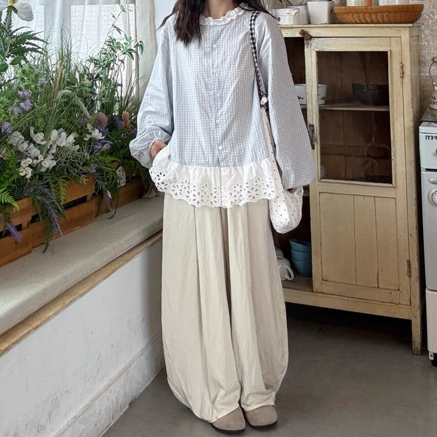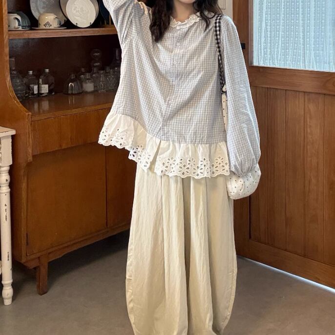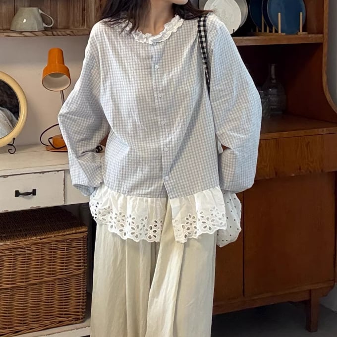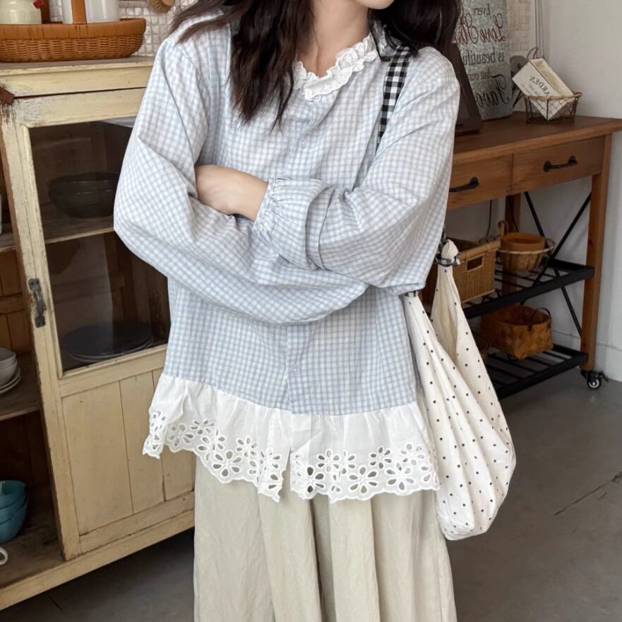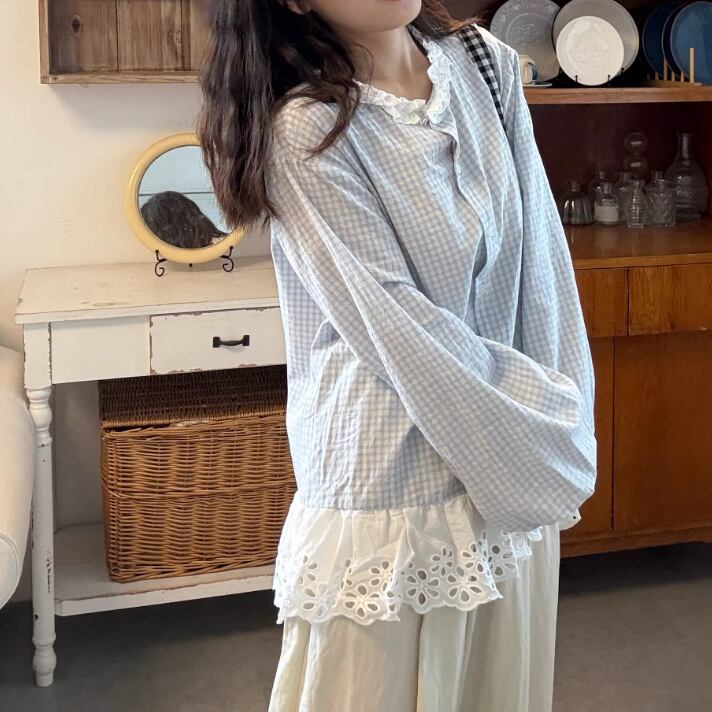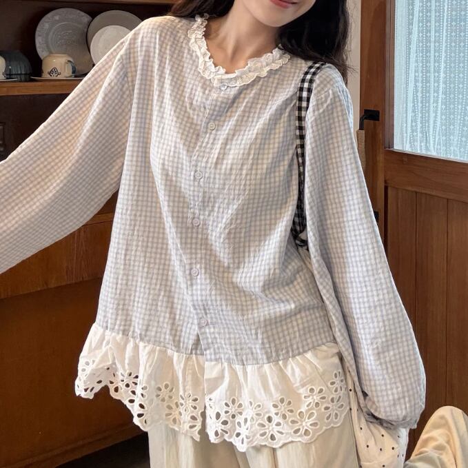 2色/フリルカラーコットンブラウス ・8607