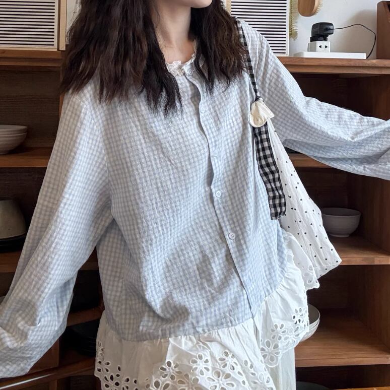 丸ボタンワッフルブラウス ・3622