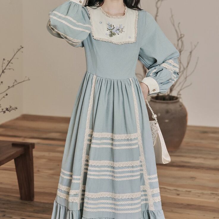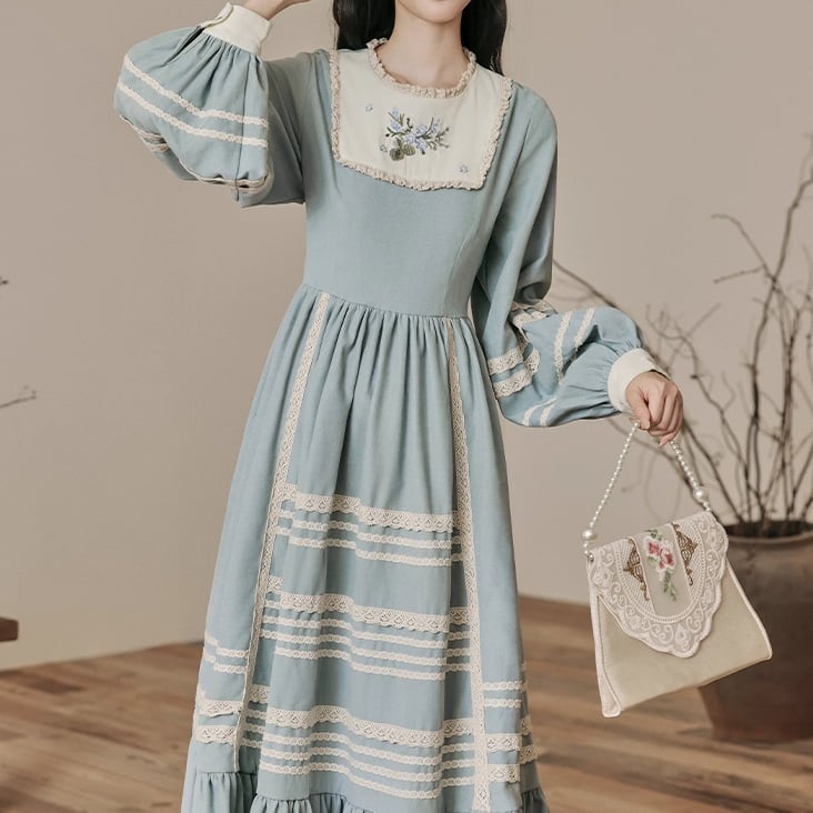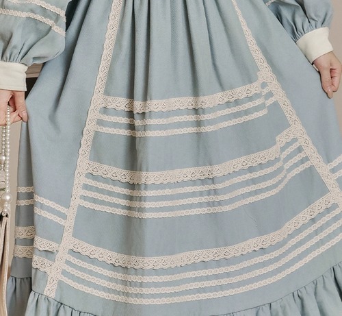 レース貼りコーデュロイロングワンピ ・6410