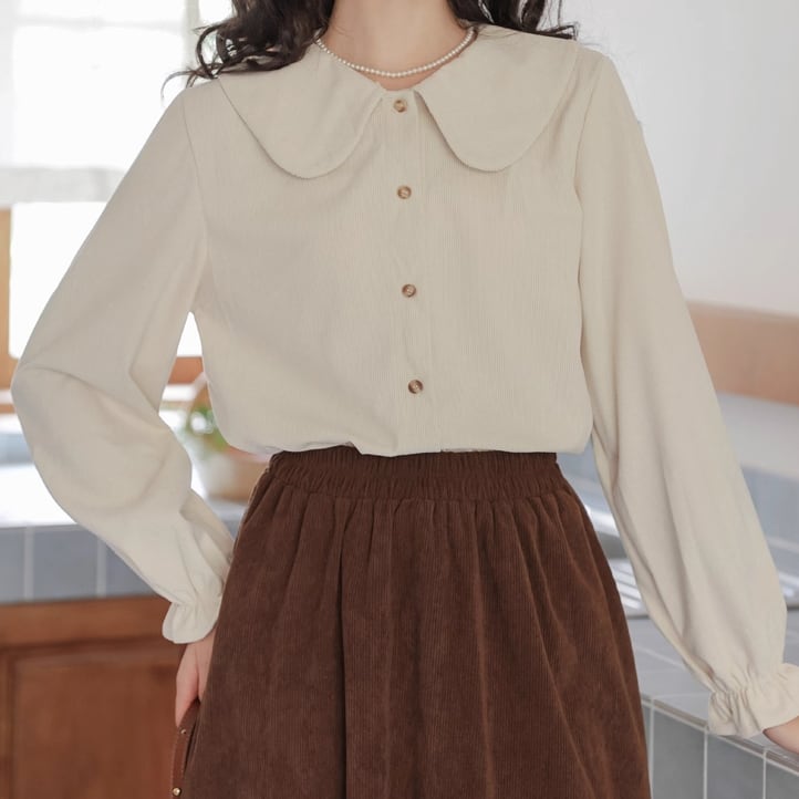 ラウンドネックレトロチェック柄ブラウス ・8142